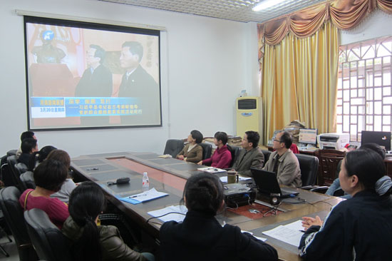 随后,与会同志观看了“习近平总书记调研指导河南兰考党的群众路线教育实践活动”电视新闻和纪录片《英烈焦裕禄》。