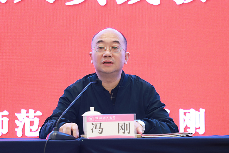 冯刚在讲话中充分肯定了我校在推进思想政治理论课教学改革方面的探索和成效,构建的“两化三式四体系”实践课教学模式,丰富了既有教学观念,充分发挥了思政课教师、辅导员、心理健康教育教师和党务工作者等队伍的力量,形成全员全程全方位的大思政课格局。他强调,深入推进思政课教学改革,要把立德树人融入实践教学全过程,深刻把握实践教学在思政课建设中的特殊重要性,认真总结思政课实践教学的经验做法,科学把握思政课实践教学的体系建构和质量评价,把理论讲授和实践教学结合起来,将思政课实践教学融入思想政治工作体系、育人体系、网络文化建设体系、质量评价体系中,破解立德树人在具体工作中如何落实的难题,全面提升思想政治理论课的质量和水平。