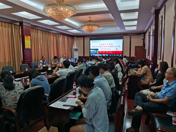 8月29日下午,学院在屏风校区教八楼三楼会议室召开了2021年秋季学期全体教师会议,全面部署安排新学期重点工作,学院党政领导以及全体教职工参加。会议由副院长蒋晓俊主持。