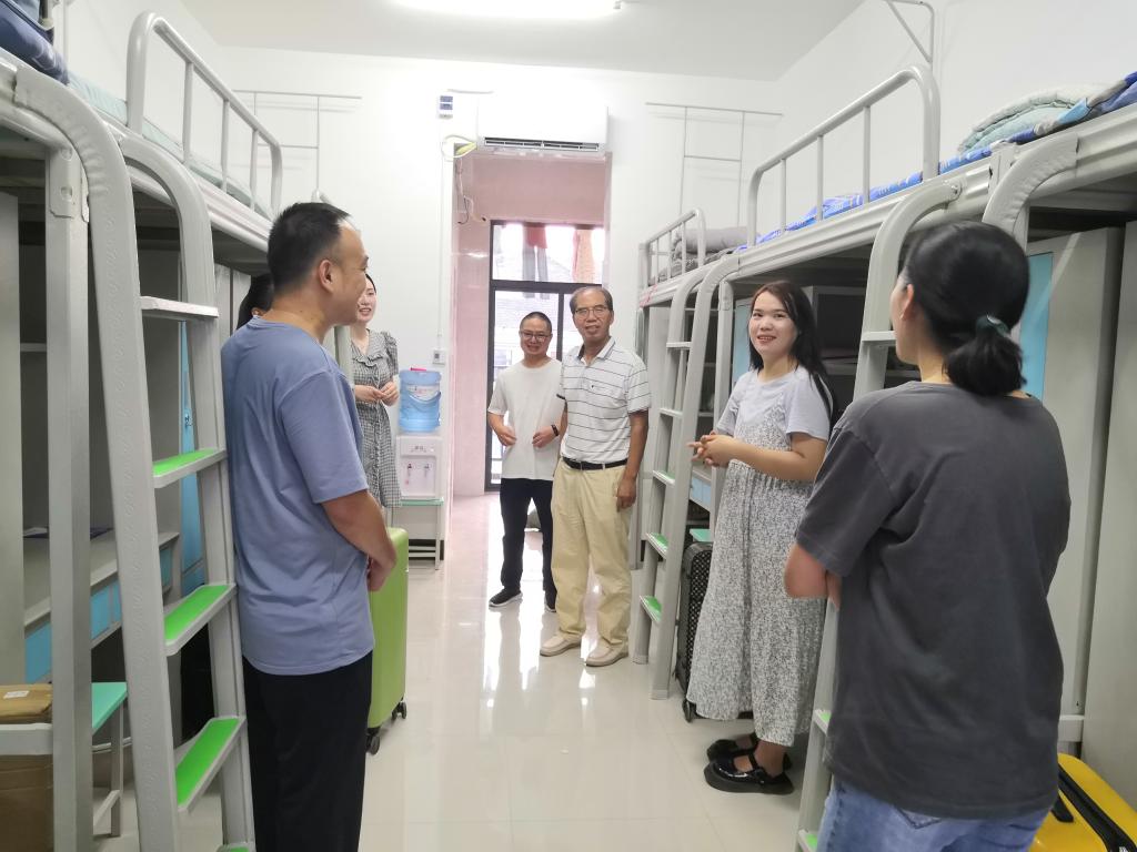 为帮助学院2021级新生更快的融入校园生活,深入了解新生的生活状况和思想状态,9月12日下午,学院党委书记王青山、院长助理吴杨义、莫天荣老师带领学院学生辅导员一起走访了学生宿舍,看望了2021级新生。