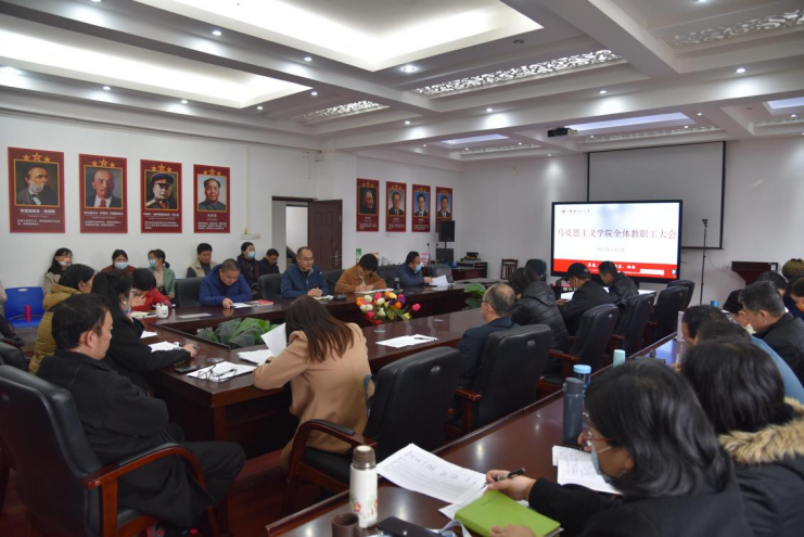 会上,党委书记耿俊茂主要围绕政治意识、师德师风和党群建设三个方面作了相关要求。他提出,马院教师应该带头讲政治,深刻领会“两个确立”,切实增强“四个意识、坚定“四个自信”、做到“两个维护”;其次,教师在课内课外应注重自己的言行举止,严格落实意识形态工作,积极关心学生的返校和毕业方面的情况;最后,各教研室应积极配合好学院党支部,认真做好我院的党群建设工作。