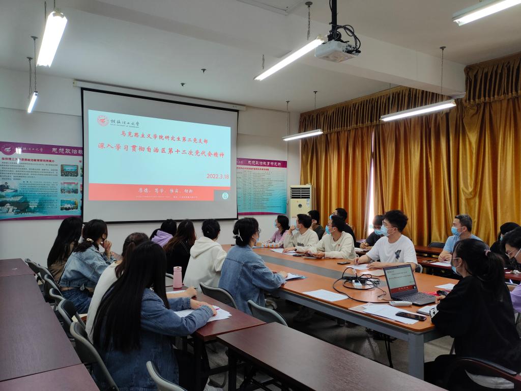 研究生第二党支部开展深入学习贯彻自治区第十二次党代会精神的专题党课(一)