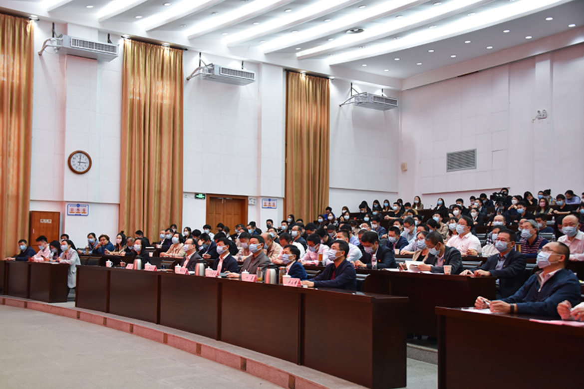 时值习近平总书记视察广西“4·27”重要讲话精神一周年之际,为更好地学习领会习近平总书记关于广西工作的“四个新”总要求,进一步激发全校各级党组织和广大师生干事创业活力,4月22日下午,学校在屏风校区图书馆报告厅举行学习领会习近平总书记视察广西“4·27”重要讲话精神一周年纪念研讨会,并以网络形式进行同步直播。学校党委副书记、校长解庆林,党委副书记齐俊斌出席会议。学校党委各职能部门负责人,各二级单位党组织负责人,基层党支部、团支部书记代表,教职工代表参加会议。