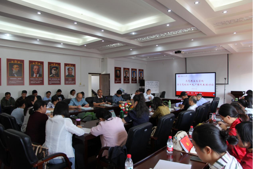 为深入学习领会党的二十大精神,引导全体教职工切实把思想和行动统一到党的二十大精神上来,坚持学在前、走在前、做在前。10月18日下午,我院在雁山校区07415会议室组织学习习近平总书记在参加党的二十大广西代表团讨论时的讲话精神,会议由学院党委书记耿俊茂主持,全体教职工参会。