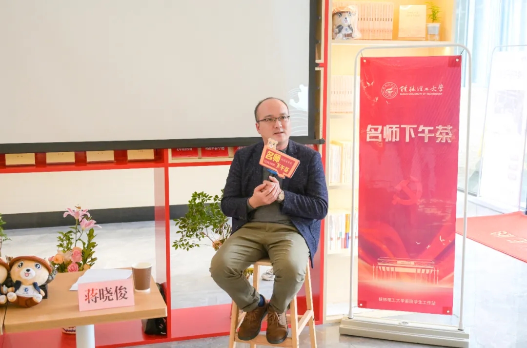 为深入学习宣传贯彻党的二十大精神,深入搭建线下师生交流平台,促进学生与名师面对面交流,11月17日下午,由我校学生工作部(处)主办,学校易班发展中心、学校易班学生工作站、中国大学生在线伟德国际1946手机校园网络通讯站承办,主题为"‘易’心共勉二十大,携手奋进新征程”的第十五期"名师下午茶"在雁山校区八桂书苑举行。本次"名师下午茶"由我校bv伟德国际1946副院长、硕士研究生导师蒋晓俊老师主讲,来自各学院的四十余名学生代表参加本次活动。