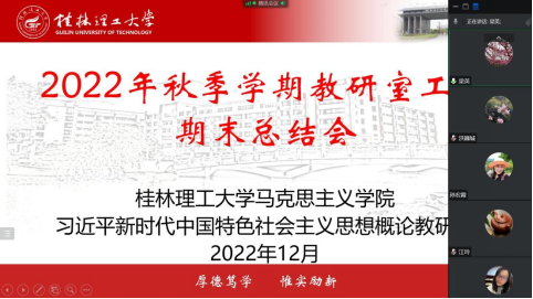 12月29日,习近平新时代中国特色社会主义思想概论教研室通过腾讯会议召开2022年秋季学期期末总结会教研室全体教师参加了会议。