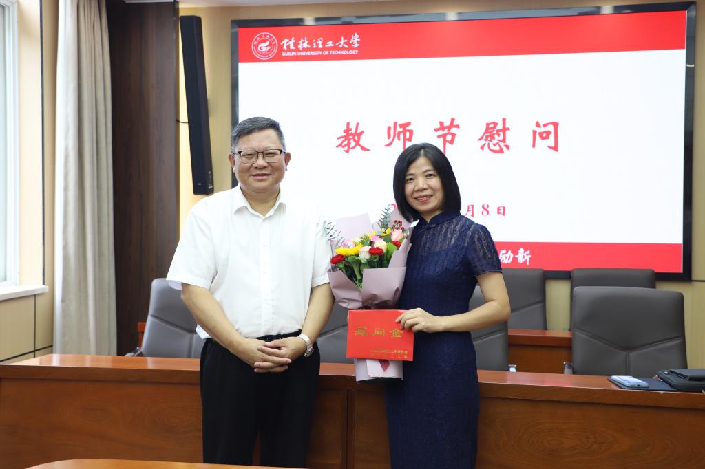 在第39个教师节即将来临之际,为弘扬尊师重教的优良传统,学校党委书记邓军率队在屏风校区办公楼第一会议室看望慰问学院刘金菊教授,致以节日的问候和诚挚的祝福,送去学校的关怀和温暖。