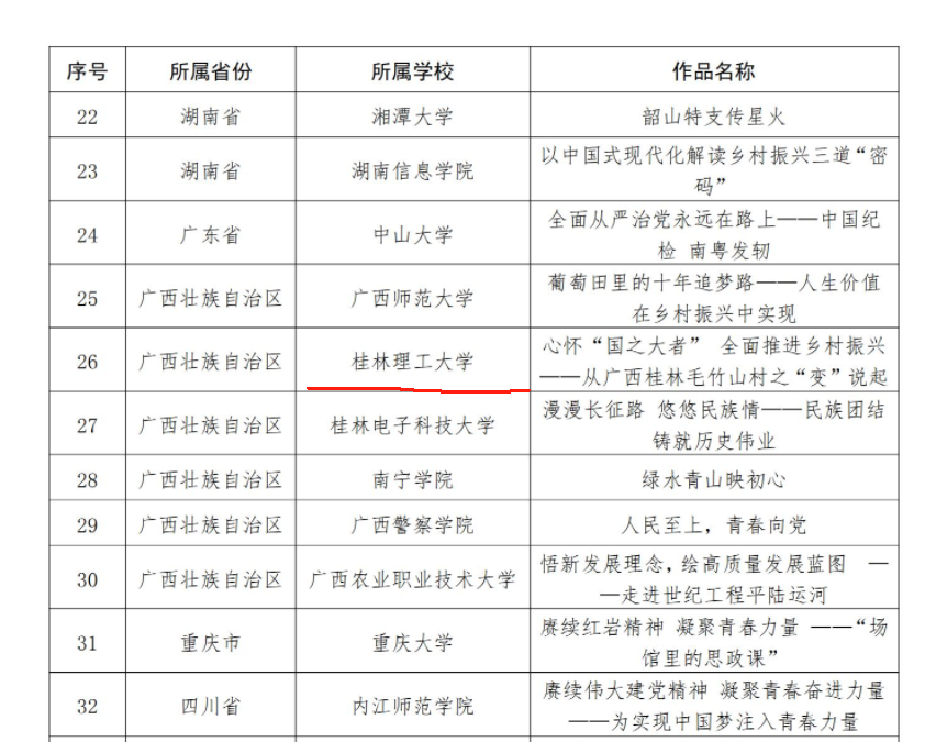 据悉,全国大学生讲思政课公开课展示活动为教育部开展的习近平新时代中国特色社会主义思想大学习领航计划系列主题活动之一。自2023年6月启动以来,本次活动覆盖了全国百余所高校,吸引了13904个优秀团队积极参与,报送作品网络总播放量高达694万次。此次活动全国共评出本科组299件获奖作品,其中广西高校获一等奖作品6件、二等奖作品2件、三等奖作品3件。