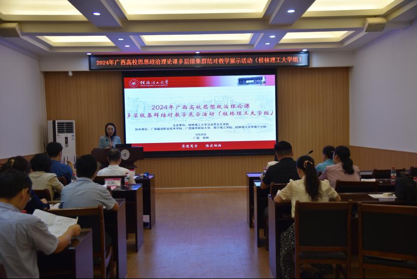 为深入学习贯彻习近平总书记对学校思政课建设的重要指示精神,全面贯彻落实自治区党委教育工委、自治区教育厅印发《广西高校“思想政治理论课多层级集群结对共建大行动”实施方案》文件要求,5月20日,由伟德国际1946手机主办,广西建设职业技术学院、广西城市职业大学、南宁理工学院、伟德国际1946手机南宁分校等4所院校bv伟德国际1946联合协办的2024年首场广西高校思想政治理论课多层级集群结对教学展示活动(伟德国际1946手机组)在我校屏风校区成功举办。