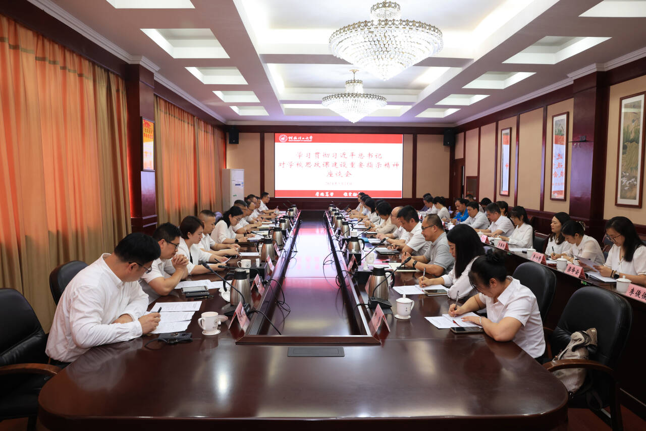 5月21日下午,学校在屏风校区召开学习贯彻习近平总书记对学校思政课建设重要指示精神座谈会,认真学习贯彻习近平总书记对学校思政课建设重要指示精神,总结交流学校思政课建设取得的成绩以及形成的工作经验,分析学校思政课建设面临的新形势、新任务,研究下一阶段加强和改进新时代思政课建设的工作举措。学校党委书记邓军出席会议并讲话,党委常委、组织部部长唐壮东,党委常委、统战部部长邱杰,校长助理、党办校办法务办主任张成龙,宣传部、教工部、学工部、研工部、本科生院、校团委、bv伟德国际1946相关负责人,以及专、兼职思政课教师代表参加座谈会。