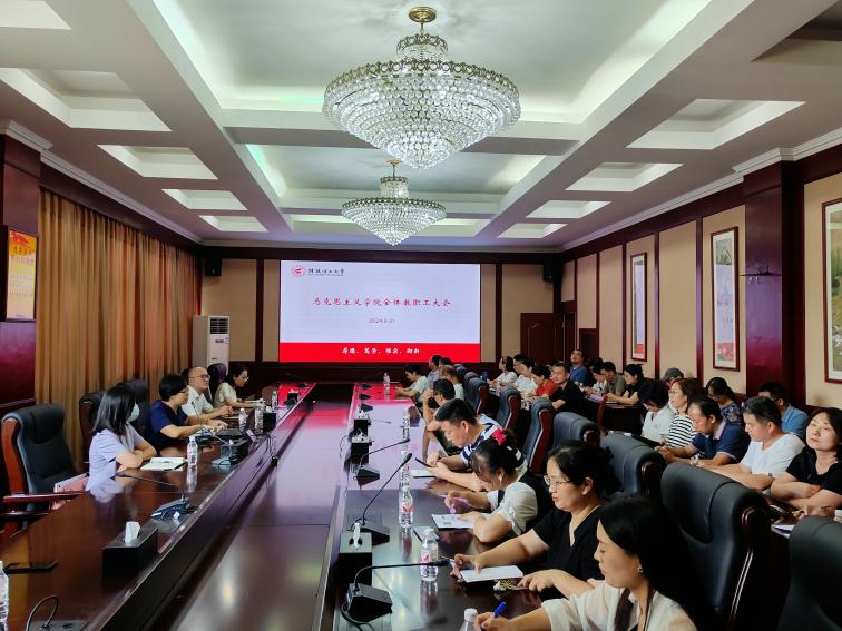 蒋晓俊院长对假期思政工作队伍培训班、教师集体磨课备课以及思政课暑期实践教学等工作进行了梳理总结,同时结合学院开学工作会议精神和要求,对bv伟德国际19462024年秋季学期的工作进行了安排部署,指出新学期学院要深入学习贯彻落实学校党委三届八次全会和2024年改革发展研讨会会议精神,聚势谋远,创新求变,向提高政治站位强定力,向勇于改革创新激活力,向乐于人才引培聚动力,向善于团结协作稳内力,汇聚马院由大变强的核心力量。强调全体教师要以钉钉子精神狠抓工作落实,敢于担当,主动作为,推进“一马当先”系列工作厚底色、呈特色。一是在教书育人上下功夫,夯实“关键课程”的基础地位;二是在学科建设上下功夫,激活“第一学科”的发展势能;三是在科研增效上下功夫,彰显“在马言马”的理论成色;四是在增进福祉上下功夫,强化“人民至上”的宗旨意识,为不断开创学院高质量发展的新局面作出更大贡献。