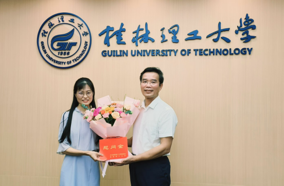 学院教师接受教师节表彰。9月9日下午,在学校举行的第40个教师节庆祝大会暨“教育家精神”宣讲会上,学校领导为第二届广西高校党务工作者基本功大赛一等奖获得者蒋晓俊颁奖、为近期荣休的梁茜老师举行了荣休仪式。