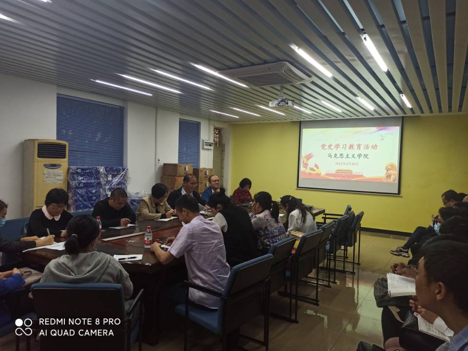 王青山书记还特别强调,我们作为思政教师更应积极开展党史学习教育,从党的百年奋斗史中汲取智慧和力量,积极发挥高等学校作为党史教育、研究、宣传的重要阵地的作用,将党史学习教育融入高校思政课堂教学当中,推动党史教育进高校、进课堂、进学生头脑,让红色基因、革命薪火代代传承。