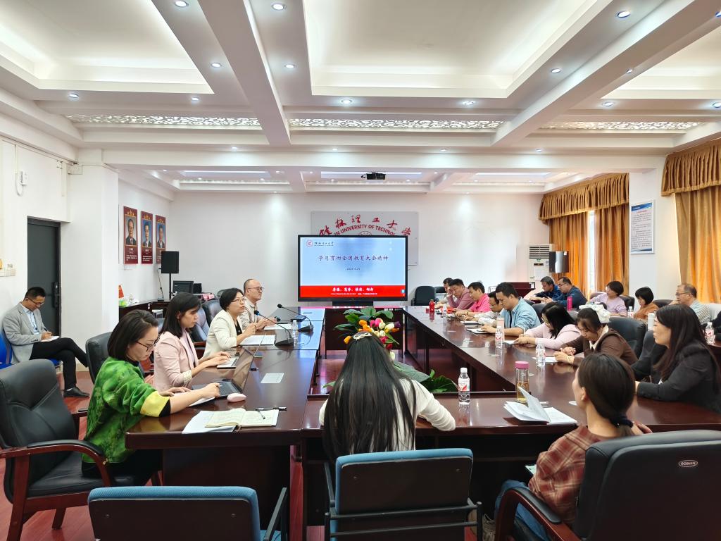 10月25日下午,学院在雁山校区07415会议室组织开展了全体教师理论学习会议,深入学习了全国教育大会精神以及“时代楷模”杨士莪同志的先进事迹。会议由学院党委书记梁英主持,学院全体教师参加了此次学习。