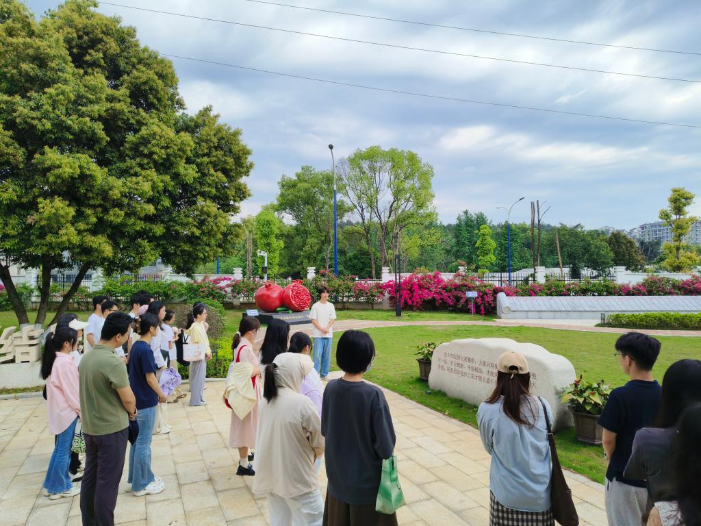 4月21日,学院研究生党员走进学校民族团结园,开展了以学习弘扬“石榴籽精神”为内核的沉浸式主题教育。作为开展校园民族团结教育的重要阵地,民族团结园通过观演广场、“四个与共”“五个认同”主题雕塑、石榴林等场景,构建了“一步一景、一景一课”的立体化教育路线。