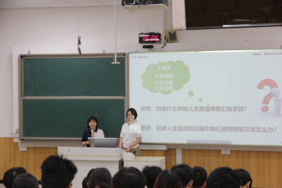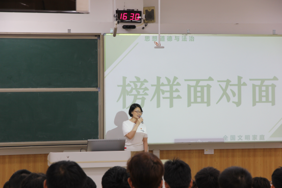 聚焦同学们对人生目的和人生态度的追问,李海霞老师与第一届“全国文明家庭”荣誉称号获得者刘炜女士同上一堂思政课。