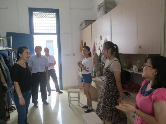 随后,学院党政领导班子来到新生宿舍,对新生的基本情况做了了解,亲切询问了生活的状况,并特别叮嘱新生注意安全,提醒饮食等方面的注意事项。