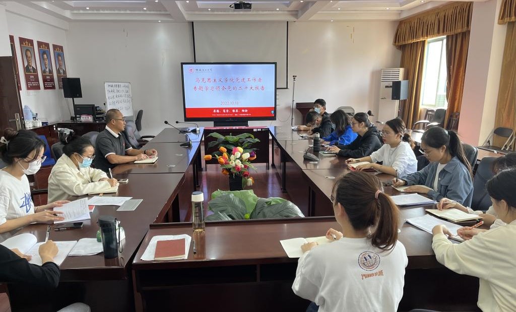 为深入学习领会党的二十大精神,切实提升学院党建工作者的理论素养,自觉把思想和行动统一到党的二十大精神上来,10月18日上午,我院组织全体党建工作者专题学习党的二十大报告,会议由学院党委书记耿俊茂作主讲,学院全体党建工作者参加了此次学习。