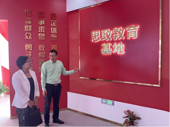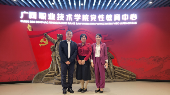 最后,梁英书记一行来到了广西职业技术学院。在广西职业技术学院,梁英书记与马克思主义学院领导及招生与就业服务中心负责人进行了亲切交流。双方围绕产业发展趋势、人才需求变化、校企合作模式创新等话题进行了深入探讨。双方就共建实训基地、搭建产教融合平台等方面达成了广泛共识。