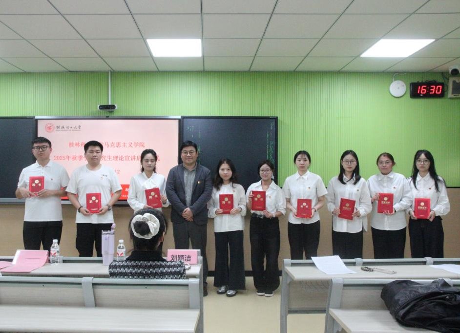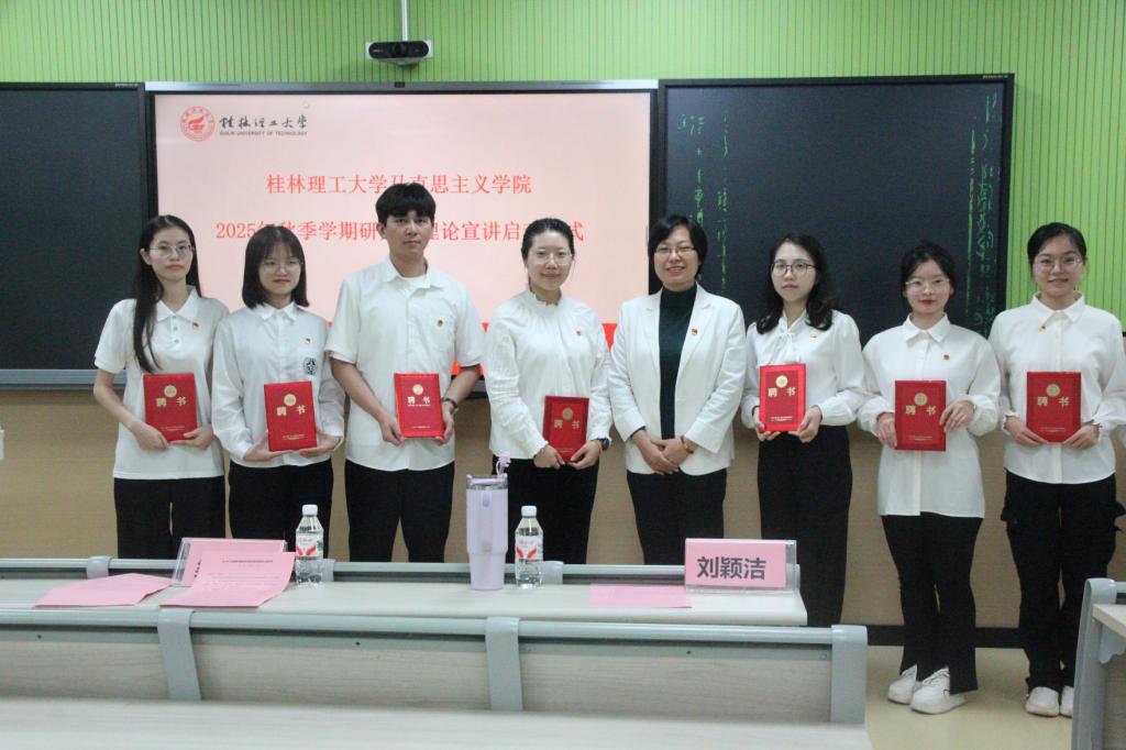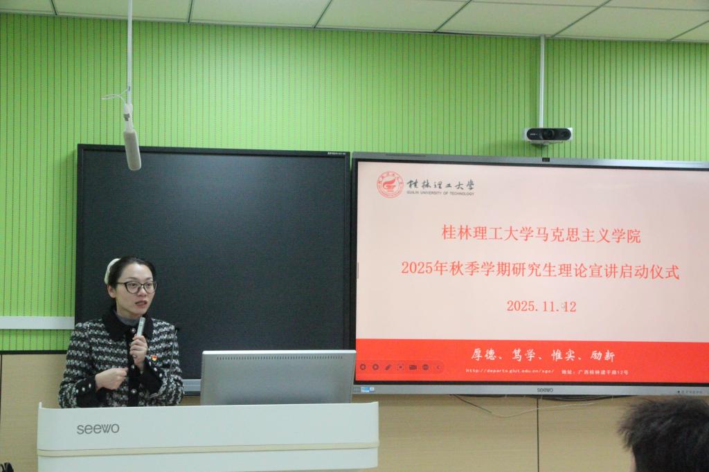 为深入贯彻党的二十届四中全会精神以及习近平总书记关于民族团结教育的重要讲话和指示精神,充分发挥马克思主义理论学科、理论研究和理论宣讲优势,推动党的创新理论在基层落地生根。11月12日下午,我院在雁山校区06306教室举行2025年秋季学期研究生理论宣讲启动仪式,学院党委书记梁英,党委副书记、纪委书记马彬彬,院长助理兼本次宣讲团指导老师刘颖洁到会指导,学院2025年秋季学期研究生理论宣讲团全体成员参加了会议,会议由学院李碧仙老师主持。