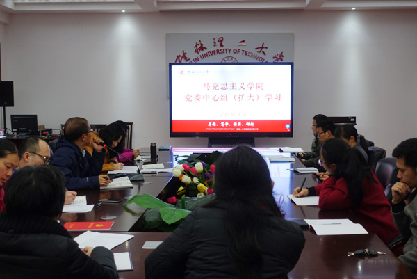 3月5日下午,我院在雁山校区07415教室召开了党委中心组学习(扩大)会议,会议由学院党委书记王青山主持,全体教工参加了会议。