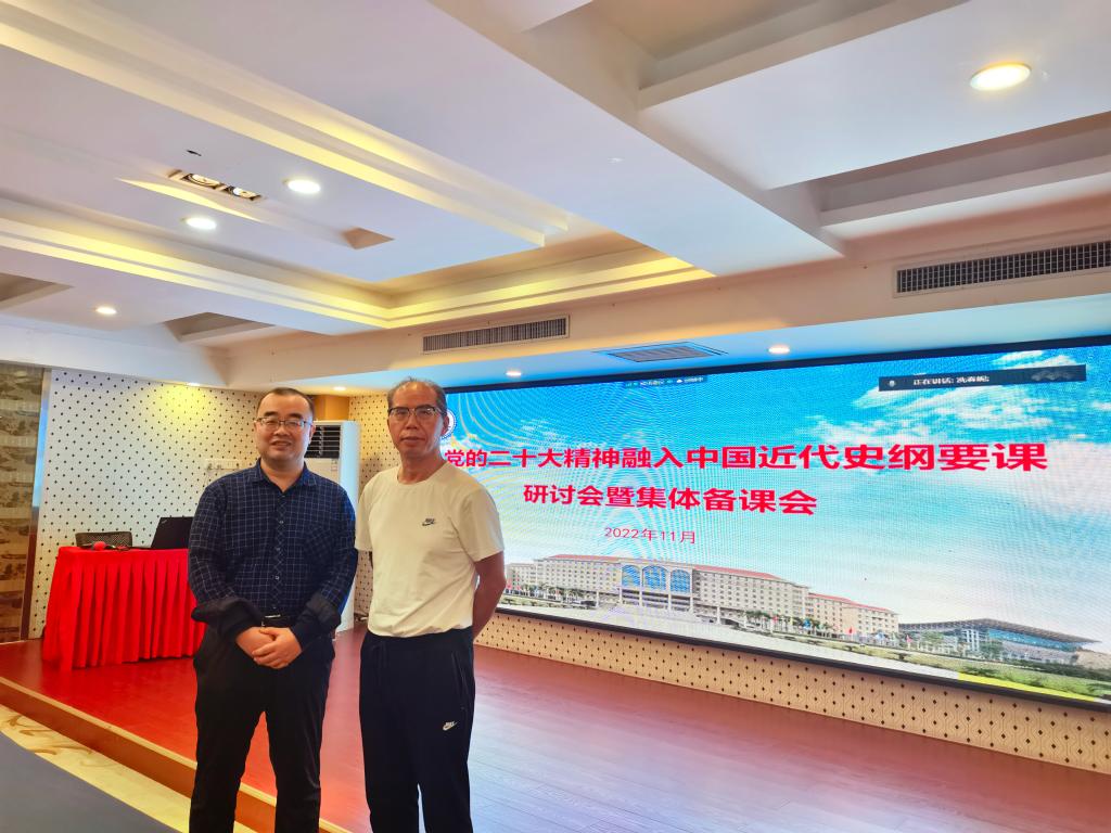 为促进党的二十大精神与中国近现代史纲要课程的有效融合,11月19-20日,纲要教研室教师王青山、王英强参加了在梧州学院举办的“党的二十大精神融入中国近现代纲要研讨会暨集体备课会”。